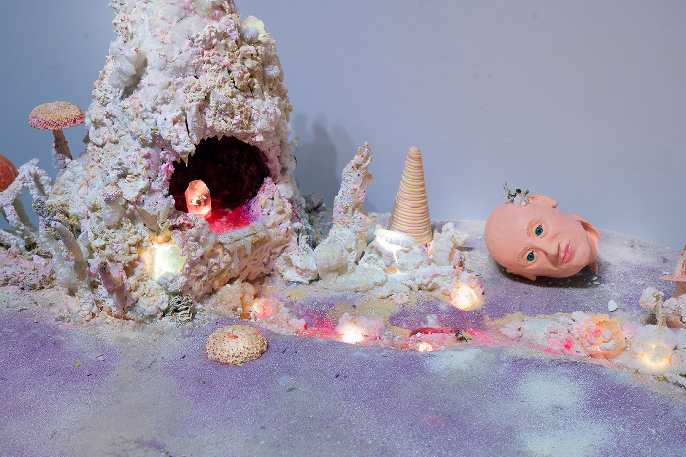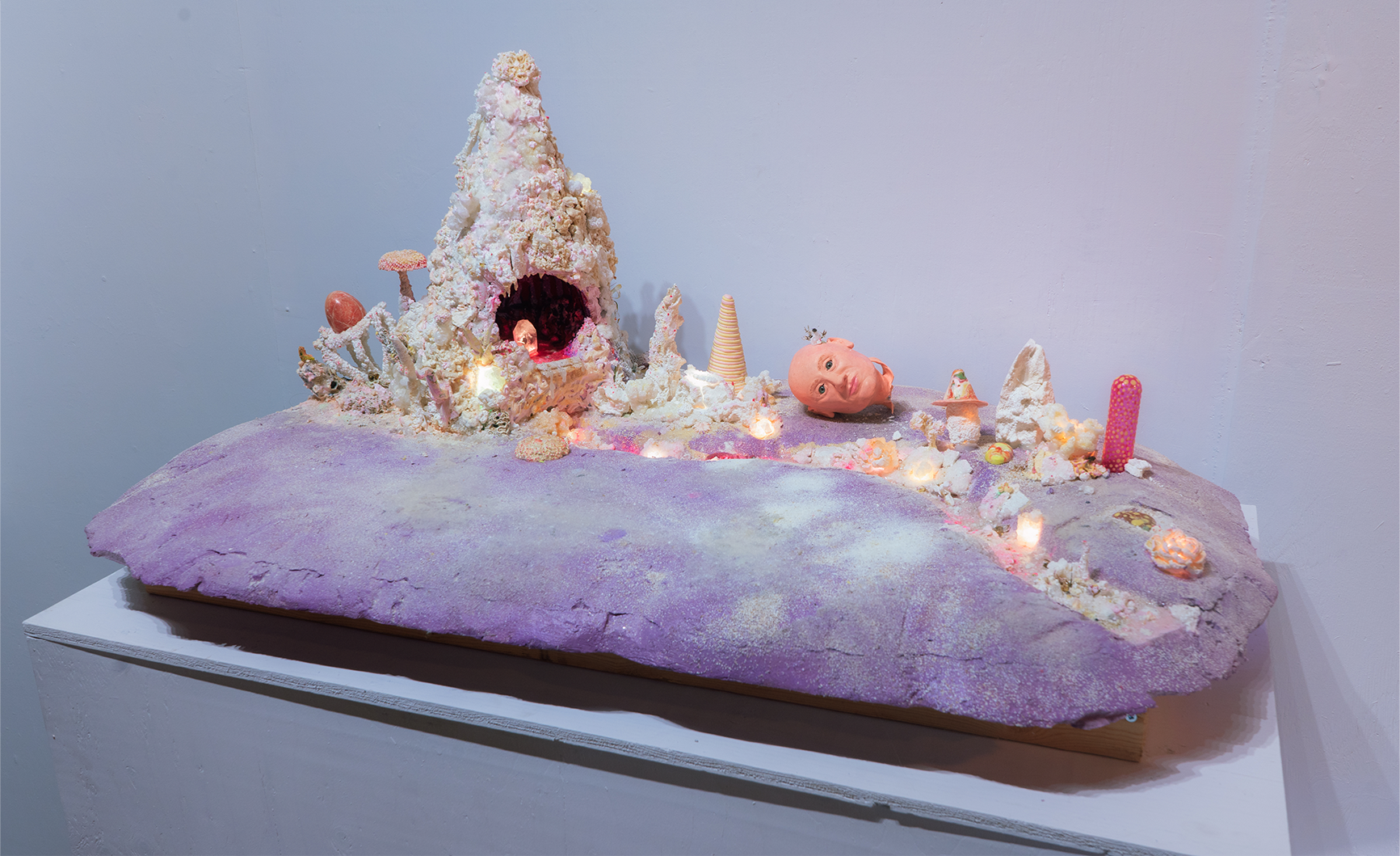 . Borax, styrofoam, polymer clay, LEDs, crystallized flowers, etc. 30 x 24 x 18 in